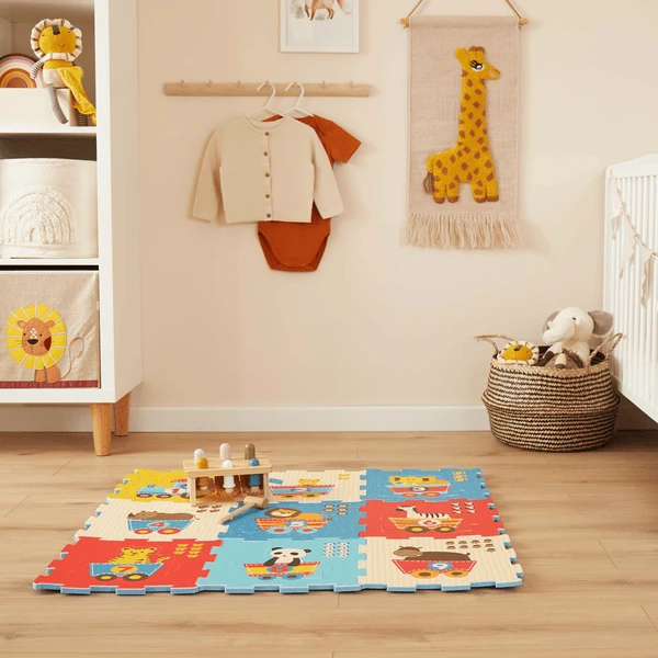 De schuimstof stukken kunnen makkelijk als kleed of als kubus samengesteld