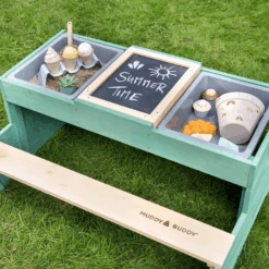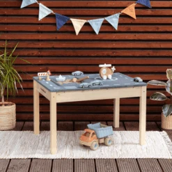 Kidkraft® Kinder Tuintafelset Met Bankjes, Kussens En Parasol, Blauw Met Witte Strepen