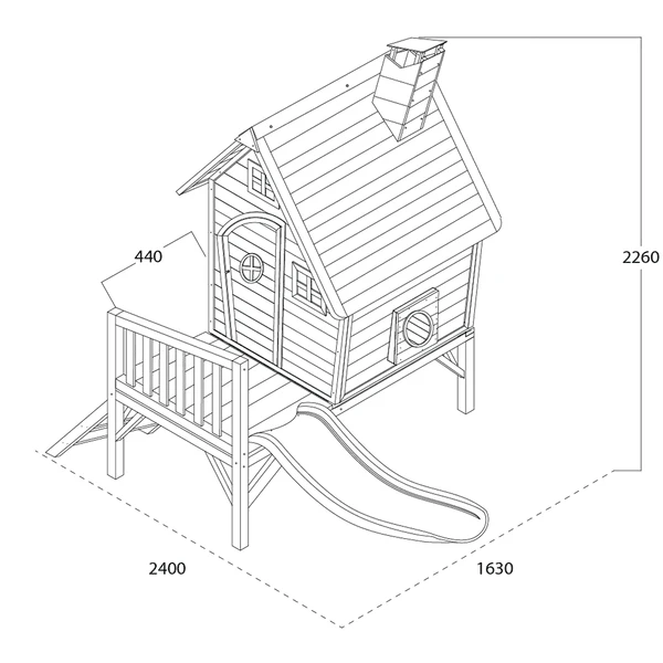 Dit speelse EXIT Fantasia huisje staat op poten en heeft een leuke glijbaan. Het houten speelhuisje is eenvoudig in elkaar te zetten met de vooraf gemonteerde panelen. Details zoals een schoorsteen, speels gevormde raampjes en een scheve balustrade maken het EXIT Fantasia 300 houten speelhuisje helemaal af!