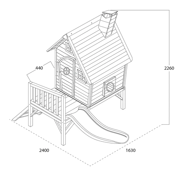 Dit speelse EXIT Fantasia huisje staat op poten en heeft een leuke glijbaan. Het houten speelhuisje is eenvoudig in elkaar te zetten met de vooraf gemonteerde panelen. Details zoals een schoorsteen, speels gevormde raampjes en een scheve balustrade maken het EXIT Fantasia 300 houten speelhuisje helemaal af!
