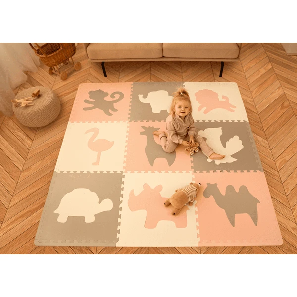 Het is een kindvriendelijke puzzelmat om spelenderwijs over dieren te leren. De mat is perfect voor kruipen, spelen, yoga thuis, fitness of zelfs buiten. De 12 randstukken vervolledigen elke set en maken er een vierkant tapijt uit één stuk van.