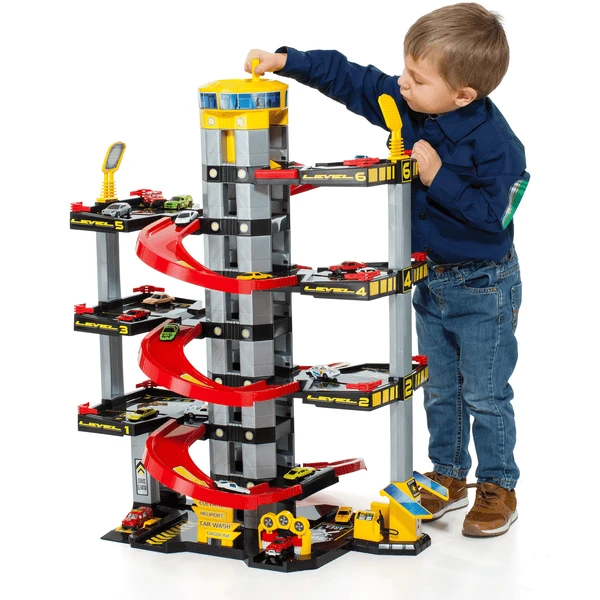 - Mega parkeerplaats met 7 speelniveaus, inclusief hefplatform, wasstraat en benzinepomp.