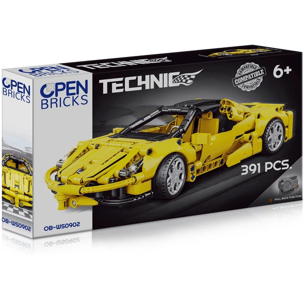 - Open Bricks Sportwagen kit met 391 onderdelen.