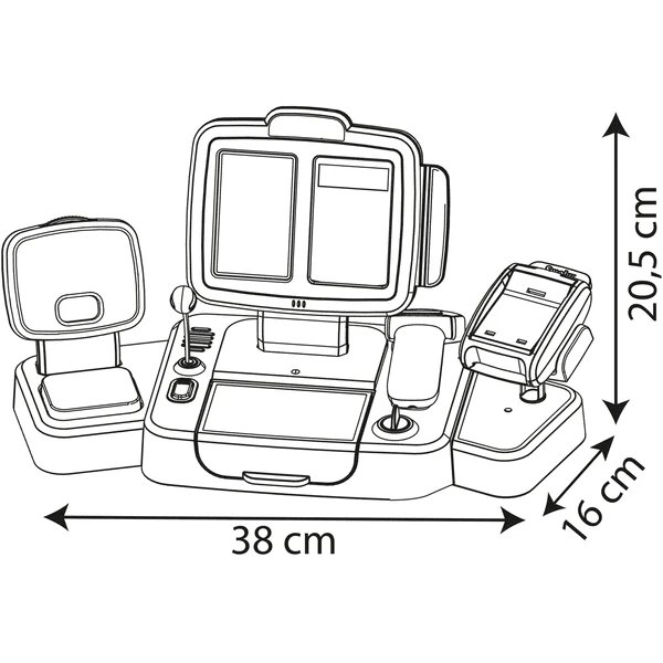 - De scanner ziet er bijzonder realistisch uit met het bipgeluid en het rode licht. Kleine winkeliers kunnen via de microfoon informeren over nieuwe aanbiedingen