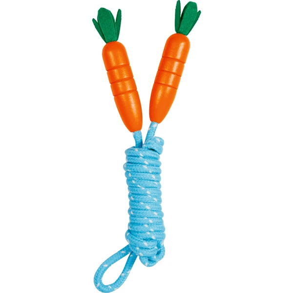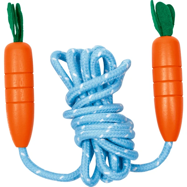 - Blauw springtouw met grappige houten handvatten in wortelvorm